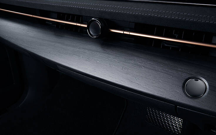 Οι επιβάτες των μπροστινών καθισμάτων έρχονται αντιμέτωποι με το μινιμαλιστικό ταμπλό, το οποίο συνδυάζεται άψογα με το σχήμα της καμπίνας, μεταβαίνοντας στις πόρτες, χωρίς κουμπιά και διακόπτες που συναντώνται στα συμβατικά οχήματα. Οι κύριες λειτουργίες ελέγχου του κλιματισμού ενσωματώνονται στην κεντρική κονσόλα με τη μορφή χωρητικών απτικών διακοπτών που προσφέρουν την ίδια αίσθηση με τους μηχανικούς διακόπτες, καθώς προκαλούν δονήσεις με το άγγιγμα. Εμφανίζονται μόνο όταν το αυτοκίνητο είναι ενεργοποιημένο, παρέχοντας μια τεχνολογική και ταυτόχρονα πολυτελή πινελιά στο cockpit.