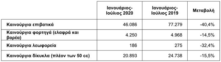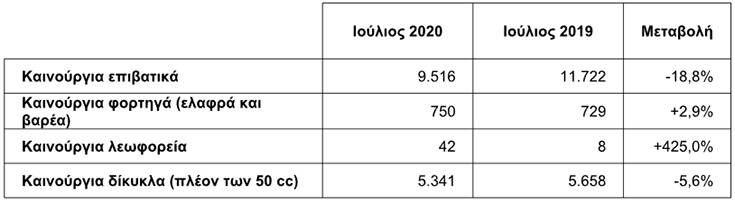 Ο Ιούλιος επίσης εμφάνισε τρομακτική αύξηση (+ 425%) στις πωλήσεις καινούριων λεωφορείων, ενώ η πτώση των πωλήσεων στα δίκυκλα συνεχίζεται με το 7μηνο να υστερεί κατά 15,5% σε σχέση με αυτό του 2019.