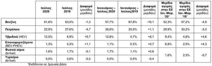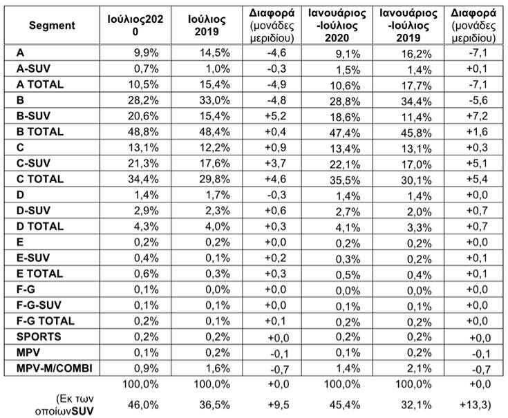 Σύμφωνα με πρώτους υπολογισμούς, η πρόοδος στα segments επιβατικώνκαι στην κατανομή ανά καύσιμο, ως τον Ιούλιο, έχει ως εξής: