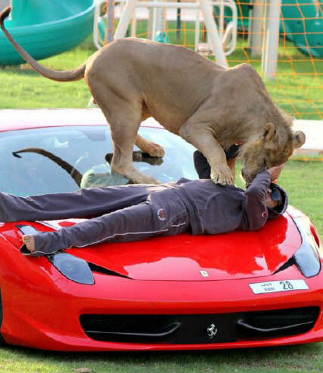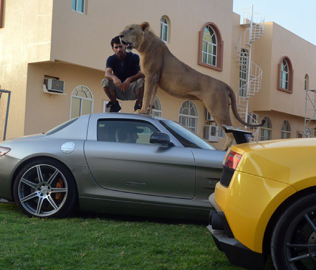 Στον έξαλλο κόσμο των κροίσων της αραβικής χερσονήσου τίποτα δεν λέει καλύτερα «είμαι πλούσιος» από το να ποστάρεις συνεχώς στο Instagram τον εαυτό σου και τα λιοντάρια σου δίπλα (ή ακόμα και πάνω) στις Mercedes, τις Lamborghini και τα άλλα μηχανοκίνητα παιχνίδια σου.