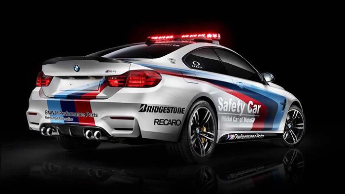 Την προηγούμενη χρονιά η BMW M6 Gran Coupe αποτελούσε το αυτοκίνητο ασφαλείας για το Παγκόσμιο Πρωτάθλημα Μοτοσικλέτας ( MotoGP), ωστόσο το φετινό πρωτάθλημα χρέη του safety car έχει αναλάβει η νέα BMW M4 Coupe. Προφανώς, το γερμανικό coupe μοντέλο εξοπλίζεται με το πακέτο «Μ», ενώ έχει φορέσει την «αθλητική» περιβολή του. Η BMW M4 Coupe έχει σκοπό να κρατήσει το ρυθμό των μοτοσικλετών σε περίπτωση ατυχήματος στο grid, έτσι το βάρος του έχει μειωθεί χάρη στην εκτενή χρήση του ανθρακονήματος και το «άδειασμα» της καμπίνας.