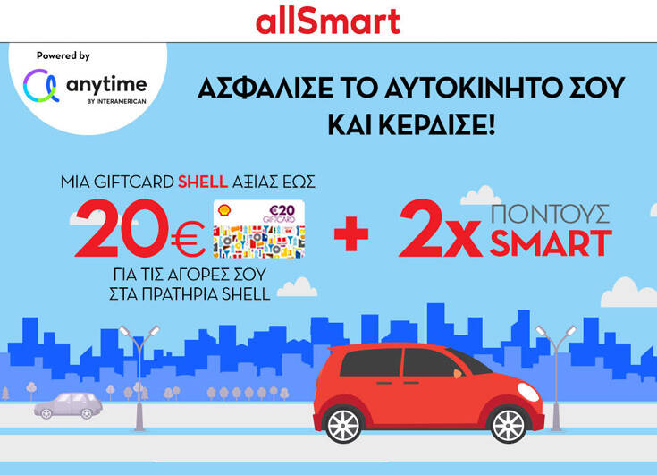 Συγκεκριμένα, το Shell Smart Club προσφέρει τη δυνατότητα στα μέλη του να ασφαλίσουν το όχημά τους μέσω της ιστοσελίδας του allSmart.gr και να κερδίζουν gift card αξίας €20 για καύσιμα ή άλλες αγορές στα πρατήρια Shell, καθώς και διπλάσιους πόντους για όλο το διάστημα της εξάμηνης ή δωδεκάμηνης ασφάλισής τους, καθώς και για την ανανέωση ασφάλισης του ίδιου οχήματος.