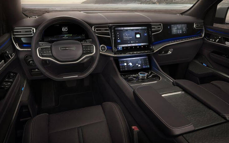 Αν κανείς ένωνε όλες τις οθόνες που βρίσκονται στο εσωτερικό του Grand Wagoneer Concept θα σχημάτιζε μια οθόνη σχεδόν 75 ιντσών. Ο οδηγός έχει μπροστά του μια οθόνη 12,3 ιντσών, ενώ στην κονσόλα δύο ακόμα οθόνες αφής 12,1 και 10,25 ιντσών παρέχουν πληροφορίες για το αυτοκίνητο και το σύστημα πολυμέσων. Παράλληλα, ο συνοδηγός έχει μια ξεχωριστή οθόνη 10,25 ιντσών που του επιτρέπει να την παραμετροποιεί σύμφωνα με τις προτιμήσεις του. Αντίστοιχα, οι επιβάτες της δεύτερης σειράς μοιράζονται μια κεντρική οθόνη 10,25 ιντσών, ενώ έχουν και από μία των 10,1 ιντσών για τον κάθε ένα ξεχωριστά. Με βάση το νέο σύστημα πολυμέσων της FCA, Uconnect 5, το οποίο βασίζεται στο λειτουργικό Android, όλες οι λειτουργίες ανταποκρίνονται άμεσα στις εντολές των χρηστών, ενώ το επίπεδο διαμόρφωσης σύμφωνα με τις επιθυμίες του χρήστη έχει εξελιχθεί στο ανώτερο επίπεδο.