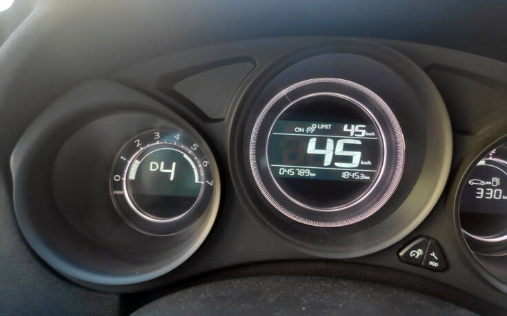 Επιστρέφοντας στην οδηγική μας εμπειρία, θα πρέπει να πούμε πως παρά την καλή διάθεση να τηρήσουμε τον ηλεκτρονικό περιορισμό της ταχύτητας στα 45χλμ/ώρα, το άγχος που δημιουργούσε η πίεση και η επιθετική συμπεριφορά των υπόλοιπων οδηγών ήταν κάποιες φορές αρκετή ώστε να χρησιμοποιήσουμε το μαγικό κουμπάκι της απενεργοποίησης του περιοριστή ταχύτητας και να κινηθούμε σύμφωνα με το ρεύμα της κίνησης.
