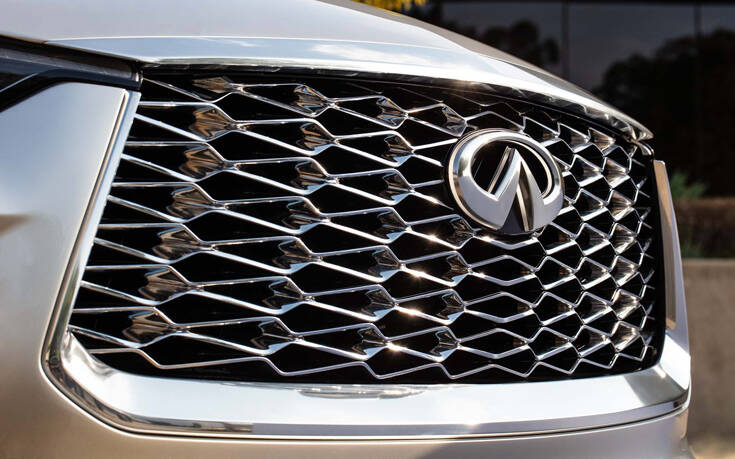 Οι περίπλοκες πτυχές των παραδοσιακών ιαπωνικών origami αποτέλεσαν την έμπνευση για το εσωτερικό πλέγμα της χαρακτηριστικής υπογραφής στην μάσκα «διπλού επιπέδου» της Infiniti. Το αποτέλεσμα είναι μια δισδιάστατη επιφάνεια που προβάλλει μια αίσθηση τρισδιάστατου βάθους. Το ίδιο μοτίβο πλέγματος αντηχεί στις πλευρικές εισόδους του αέρα, στις κάτω γωνίες του προφυλακτήρα. Το μεγάλο μετατρόχιο και οι ευκρινείς γραμμές στο αμάξωμα συνδυάζονται για να προσφέρουν μια αίσθηση σταθερότητας και μια εκλεπτυσμένη οπτική δήλωση. Η μεγάλη, πανοραμική οροφή ενσωματώνει το μοτίβο του «πτυσσόμενου κιμονό». Αυτό το γεωμετρικό χαρακτηριστικό, ως μια σειρά από περίπλοκες κάθετες γραμμές, αντλεί έμπνευση από τις πτυχές ενός μεταξωτού κιμονό και από τις δομές της σύγχρονης αρχιτεκτονικής της Ιαπωνίας.