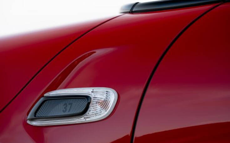 Το πλαίσιο και η οριζόντια μπάρα της μάσκας έχουν πολύ γυαλιστερό μαύρο φινίρισμα όπως και τα ένθετα στους κάτω αεραγωγούς, το άνοιγμα στο καπό, τις λαβές θυρών, την τάπα του ρεζερβουάρ, τη λαβή της πίσω πόρτας, τα λογότυπα της μάρκας μπροστά και πίσω καθώς και τα πλαίσια των προβολέων και των πίσω φώτων.