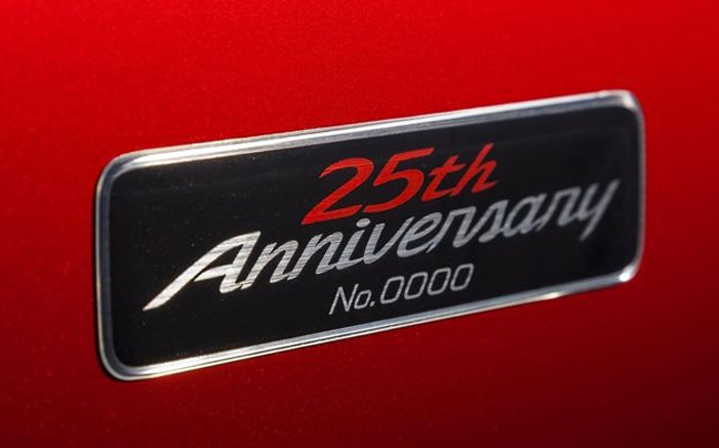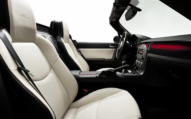 Θέλοντας να γιορτάσει τα 25 χρόνια επιτυχιών, αλλά και για να «αποχαιρετήσει» σιγά-σιγά την υπάρχουσα γενιά του με κάτι special, η Mazda θα παρουσιάσει στην έκθεση της Νέας Υόρκης ένα επετειακό μοντέλο – φόρο τιμής. Λόγος γίνεται για το MX-5 25th Anniversary Edition, μία ειδική έκδοση του «κανονικού» MX-5 με μεταλλική αναδιπλούμενη οροφή (hard top) και 6άρι μηχανικό ή αυτόματο κιβώτιο ταχυτήτων. Διαθέτει αμορτισέρ της Bilstein και είναι βαμμένο σε ένα έντονο κόκκινο χρώμα (Soul Red Metallic). Η οροφή του είναι μαύρη, όπως και η κολόνα του παρμπρίζ και οι καθρέπτες. Στο εσωτερικό, κυριαρχούν τα άσπρα δερμάτινα καθίσματα, η αντίστοιχη επένδυση των θυρών και το χειροποίητο διακοσμητικό πάνελ.