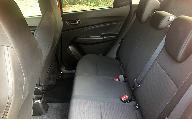 Οι χώροι (που ποτέ δεν ήταν ατού του Swift) δεν επηρεάστηκαν σε σχέση με το «απλό» μοντέλο, καθώς οι διαστάσεις παραμένουν ίδιες (3.890 χλστ μήκος και 2.450 χλστ μεταξόνιο). Οι επιβάτες εμπρός θα βολευτούν εύκολα, παρά την μπαταρία που βρίκεται κάτω από το ένα εμπρός κάθισμα, αλλά οι πίσω θα πρέπει να συμβιβαστούν και να μην απέχουν πάνω από τον μέσο όρο ύψους. Πάντως, υπάρχουν πολλές θέσεις για μικροαντικείμενα, ενώ ο Ο όγκος του χώρου αποσκευών φτάνει τα 265 λίτρα, ή 947 με τα πίσω καθίσματα αναδιπλωμένα. Το κακό εδώ είναι ότι δεν υπάρχει ρεζέρβα, γεγονός που δεν επωφελείται ο χρήστης, αφού στην θέση της είναι μια θήκη από φελιζόλ για το κιτ επισκευής ελαστικού (που σπάνια θα κάνει δουλειά στην Ελλάδα).