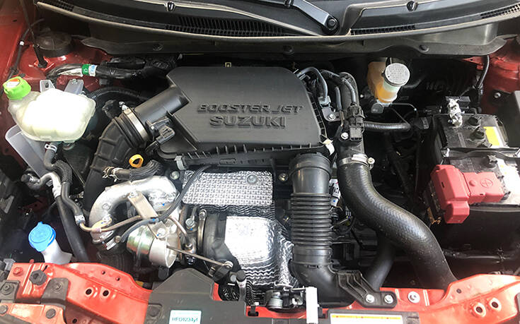 Ψυχή λοιπόν του Swift GTi που οδηγήσαμε, ο κινητήρας βενζίνης 1.4 BoosterJet με τούρμπο που συνεργάζεται όμως με ένα ήπιο υβριδικό (mild hybrid) σύστημα 48V μίζας – γεννήτριας με μπαταρία Lithium-Ion. Ο συνδυασμός έχασε (σε σχέση με το απλό Swift Sport) 11 ίππους, έχοντας πλέον μέγιστη ιπποδύναμη 129 ίππων στις 5.500 στροφές, αλλά κέρδισε 5 Nm ροπής, έχοντας συνολικά 235 Nm, από τις μόλις 2.000 στροφές.