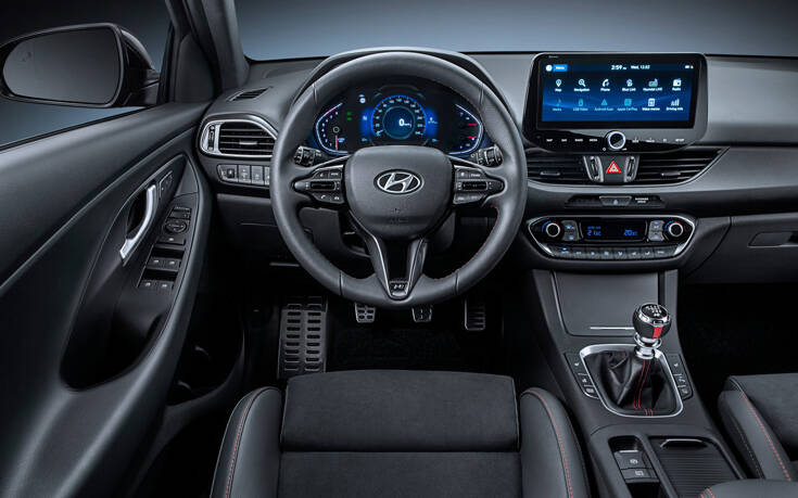 Στο εσωτερικό, τα στιλ N Line δερμάτινο τιμόνι και μοχλός ταχυτήτων, είναι ενδεδυμένα με διάτρητο δέρμα και τα σπορ καθίσματα διαθέτουν ηλεκτρική οσφυϊκή υποστήριξη και επεκτεινόμενα μαξιλάρια στον πάγκο.