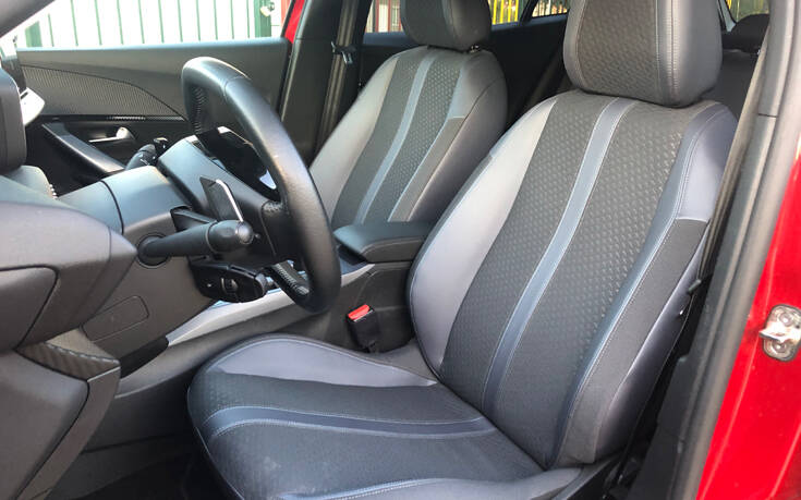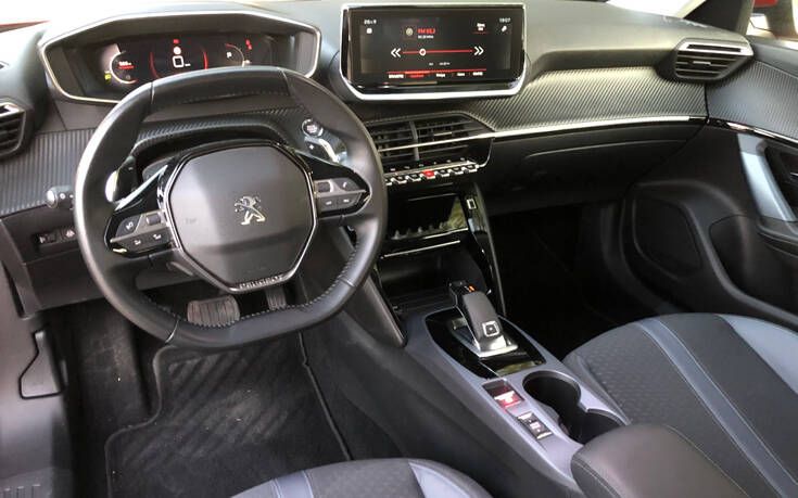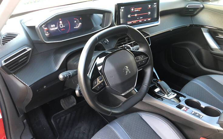 Η πολύ καλή θέση οδήγησης (με ημιμπάκετ καθίσματα), με το μικρό flat top & flat bottom τιμόνι σε συνδυασμό με το i-cocpit (στο hi tech πνεύμα της εποχής) , την ευανάγνωστη – εύχρηστη οθόνη πολυμέσων και την διάταξη των διακοπτών, κάνει τον οδηγό να αισθάνεται σαν πιλότος πολυτελούς ιδιωτικού αεροσκάφους, αλλά υπάρχει ένα εργονομικό θέμα, για τους οδηγούς που πρέπει ή θέλουν να κάθονται χαμηλά, καθώς η στεφάνη του τιμονιού κρύβει τον ηλεκτρονικό πίνακα οργάνων. Πλέον αυτού, η ορατότητα προς τα πίσω, περιορίζεται κάπως από τις πολύ φαρδιές πίσω κολώνες.