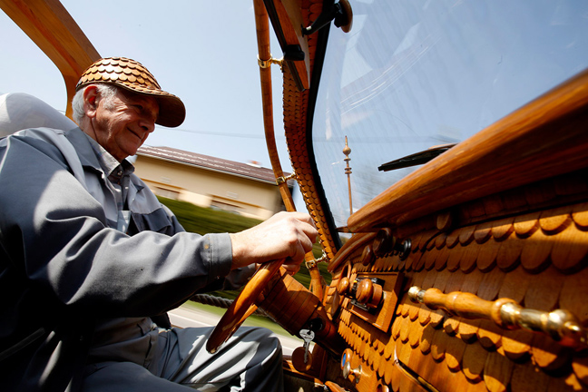 Το μεράκι του συνταξιούχου από τη Βοσνία είναι από αυτά που μένουν θρυλικά στην ιστορία της… ξύλινης αυτοκίνησης.
