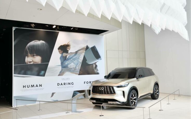 Ο συγκεκριμένος εκθεσιακός χώρος, που είναι αφιερωμένος στην πολυτελή μάρκα, περιλαμβάνει δύο από τα πιο εμβληματικά οχήματα προχωρημένης σχεδιαστικής αντίληψης, συμπεριλαμβανομένου του προσφάτως αποκαλυφθέντος QX60 Monograph, του «αγγελιοφόρου» ενός SUV που θα αποκαλυφθεί το επόμενο έτος, αλλά και του πρωτότυπου Q Inspiration sedan που παρουσιάζει μια συναρπαστική κατεύθυνση για το εμπορικό σήμα της Infiniti. Στο μέλλον θα εκτεθούν και άλλα οχήματα της πολυτελούς μάρκας, ενώ το πρόγραμμα με τα αυτοκίνητα που θα εκτεθούν κατά περιόδους, θα ανακοινωθεί σε δεύτερο χρόνο.