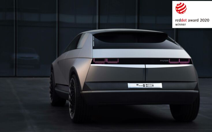 Το concept EV“45”, που παρουσιάστηκε στο Σαλόνι Αυτοκινήτου της Φρανκφούρτης τo2019, αποτίει φόρο τιμής στο 45χρονο εμβληματικό, για τη μάρκα, Pony Coupe Conceptτου 1974. Ο σχεδιασμός σηματοδοτεί μια νέα εποχή για την Hyundai που επικεντρώνεται στην ηλεκτροκίνηση και τις αυτόνομες τεχνολογίες, καθώς και στην έξυπνη σχεδίαση. Το «45» διαθέτει αμάξωμα τύπου monocoque, αεροδυναμική σχεδίαση και κάποια στιλιστικά στοιχεία εμπνευσμένα από τα αεροσκάφη της δεκαετίας του 1920.