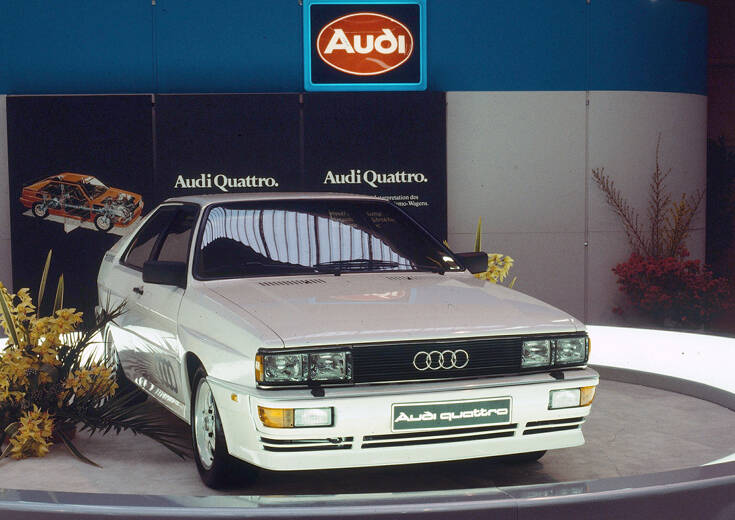 - Στην 75η Έκθεση Αυτοκινήτου της Γενεύης πρωτοπαρουσίασε η μάρκα το αρχικό quattro (κωδικός model 85), στις 3 Μαρτίου 1980.