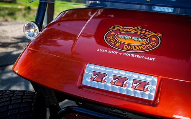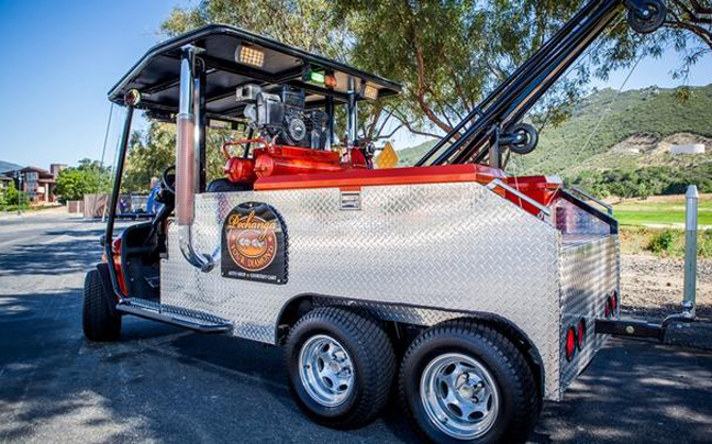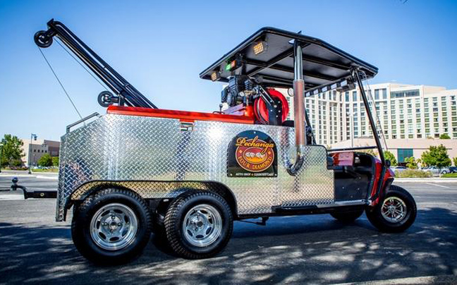 Ο στόλος των 200 αμαξιδίων του γκολφ του Pechanga Resort and Casino χρειάζεται συχνά συντήρηση και ο δαιμόνιος μηχανικός έβαλε τα δυνατά του για να συναρμολογήσει ένα ρυμουλκό για να φέρνει τα αμαξάκια στο γκαράζ του.