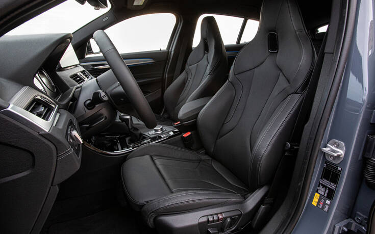Στο πολυτελές εσωτερικό ξεχωρίζουν το ταμπλό με επένδυση συνθετικού δέρματος, οι δερμάτινες επενδύσεις καθισμάτων, το σπορ δερμάτινο τιμόνι πολλαπλών λειτουργιών, ο πίνακας οργάνων black panel με την έγχρωμη ψηφιακή οθόνη ενδείξεων 5,7’’ το πολύ-χειριστήριο με τους iDrive διακόπτες προγραμμάτων οδήγησης, η οθόνη πολλαπλών ενδείξεων 6,5’’ (προαιρετικά 8.8΄΄), οι προγραμματιζόμενοι διακόπτες λειτουργιών (αφής) και ο ατμοσφαιρικός φωτισμός.