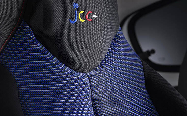 Στο εσωτερικό η «υπογραφή» του διάσημου σχεδιαστή είναι ορατή στην καμπίνα, με τα κεντημένα λογότυπα «JCCx chevrons» στα εμπρός προσκέφαλα, αλλά και τα ειδικής σχεδίασης πατάκια.