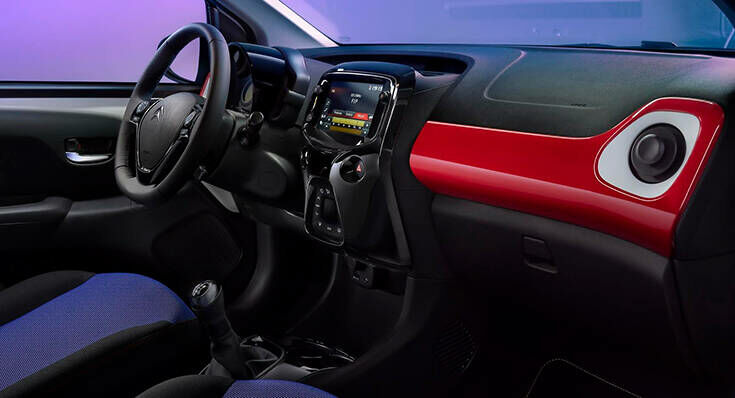 Ένα ιδιαίτερο Χρωματικό Πακέτο αναβαθμίζει την καμπίνα, με το κόκκινο ταμπλό σε Scarlet Red απόχρωση, τους λευκούς αεραγωγούς σε Porcelain White και το γυαλιστερό μαύρο στο πλαίσιο της οθόνης αφής και του επιλογέα των ταχυτήτων.