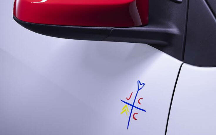 Επιπλέον, η υπογραφή του σχεδιαστή, αποτυπώνεται στα κόκκινα καλύμματα των καθρεπτών, στα μπλε κέντρα στους τροχούς και στα κίτρινα διακοσμητικά στις κολόνες Γ. Ξεχωρίζουν ακόμα, τα χαρακτηριστικά «JCCx chevrons» αυτοκόλλητα στις εμπρός πόρτες, το αυτοκόλλητο με τα αρχικά του σχεδιαστή «JCC» στο πίσω παρμπρίζ και το αυτοκόλλητο στο πίσω μέρος.