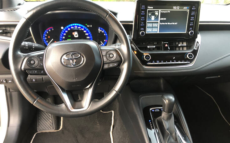 Τα πολύ καλά νέα όμως έρχονται από τη θέση οδήγησης, που για πρώτη φορά (από όσα θυμόμαστε), δίνει προσοχή στον οδηγό, προϊδεάζοντας τον ότι, αυτή η Corolla εκτός από life time όχημα (αυτοκίνητο μιας ζωής), μπορεί να προσφέρει και οδηγική ευχαρίστηση. Τοποθετημένη χαμηλά, με πολλές δυνατότητες ρύθμισης και καλή πλευρική στήριξη, η θέση του οδηγού σε συνδυασμό με το πολυρυθμιζόμενο τιμόνι και τη ρυθμιζόμενη καθ’ ύψος ζώνη ασφαλείας, είναι αυτό που λέμε οδηγοκεντρική. Εάν σε αυτό προσθέσουμε και τον πλούσιο εξοπλισμό μαζί με τα συστήματα υποβοήθησης του οδηγού, τότε έχουμε να κάνουμε με την Corolla της νέας εποχής, που εκτός από την επένδυση του αγοραστή της, σέβεται και τον οδηγό της.