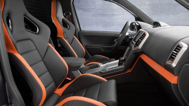 Το Amarok Power διαθέτει bi-xenon προβολείς και διπλές απολήξεις χρωμίου στην εξάτμισή του. Στο εσωτερικό, υπάρχουν δερμάτινες επενδύσεις Nappa χρώματος μαύρου-πορτοκαλί, bucket καθίσματα, τιμόνι από Alcantara και διάκοσμος από ανθρακονήματα.