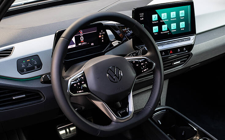 Εδώ βέβαια έχουμε μια αντίφαση. Οι προδιαγραφές όγκου και διαθέσιμου χώρου στο ID.3 είναι αυτές ενός τυπικού οικογενειακού αυτοκινήτου, που κάλλιστα θα μπορούσε να είναι και το μοναδικό μιας οικογένειας. Ναι μεν είναι ιδιαίτερα ευέλικτο εντός πόλης, με κύκλο στροφής μόλις 10,2 μέτρα (αλλά με τιμόνι σχεδόν 4 στροφές από άκρη σε άκρη), αλλά το μέγεθος δεν ταιριάζει με τους περιορισμένους χώρους στάθμευσης.
