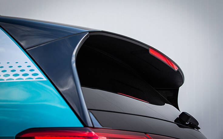 Με την πρώτη ματιά, δεν καταλαβαίνεις και πολλά πράγματα για το τι κρύβεται κάτω από τις στρογγυλεμένες επιφάνειες (αεροδυναμικός συντελεστής 0,27) με τους μικρούς προβόλους και τα τεράστια (19 ιντσών) ελαστικά που γεμίζουν τους θόλους. Βέβαια, η κλειστή μάσκα και οι αεροδυναμικής σχεδίασης ζάντες μαρτυρούν την έλλειψη ανάγκης διόδου του αέρα μέσα από τα μηχανικά μέρη, ενώ κοιτάζοντας προσεκτικά εντοπίζεις τα μεγάλων διαστάσεων πίσω φρένα που αποτελούνται από… ταμπούρα (στη συνέχεια αποδεικνύεται ότι, και πολύ είναι). Οι διαστάσεις ελάχιστα διαφέρουν από αυτές του Golf, οπότε είναι σαφές πως εδώ έχουμε να κάνουμε με ένα μεσαίο οικογενειακό 5θυρο όχημα, χωρητικότητας τεσσάρων, ή -μήπως- πέντε επιβατών;