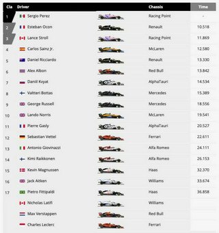 Αν σε αυτό προστεθούν και τα λάθη που έκαναν στη Mercedes όταν οι Ράσελ και Μπότας πήγαν σε πιτ στοπ, όταν οι μηχανικοί κατάφεραν να μπερδέψουν τα ελαστικά, καταλαβαίνει κανείς ότι ήταν μια καλή μέρα για τον Πέρεζ, ο οποίος πήρε τελικά τη νίκη, με τον Οκόν να τερματίζει στη 2η θέση και τον Στρολ στην 3η.
