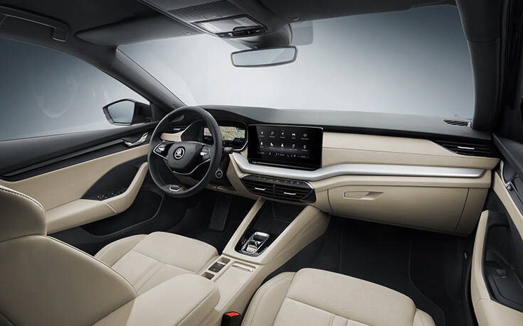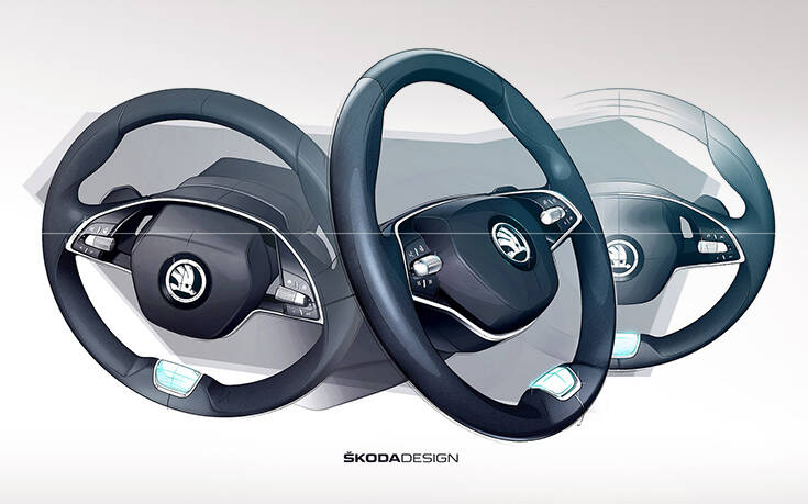 Το νέο τιμόνι των δύο ακτίνων παρουσιάστηκε για πρώτη φορά στην 4η γενιά της Octavia αλλά σταδιακά τοποθετείται και στα άλλα μοντέλα της μάρκας. Είναι εργονομικό, έχει φρέσκια εμφάνιση και επιτρέπει ποικιλία παραλλαγών, συμπεριλαμβανομένης της έκδοσης τριών ακτίνων. Χρειάστηκαν περίπου τρία χρόνια για την εξέλιξή του.