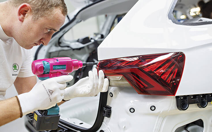 Μια άλλη ενδιαφέρουσα προσθήκη είναι και ο νέος σταθμός για την τροποποίηση των head-up displays. Αυτό συμβαίνει επειδή το Enyaq iV διαθέτει έναν νέο τύπο head-up display, με πολύ μεγαλύτερη επιφάνεια προβολής και χαρακτηριστικά επαυξημένης πραγματικότητας , κάτι πολύ πιο απαιτητικό από την πλευρά της παραγωγής, σε σχέση με το κλασικό head-up display.