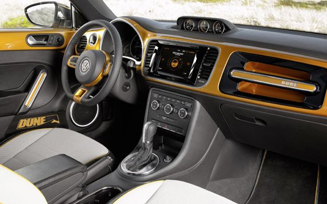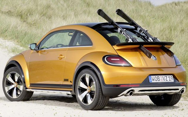 Επιπλέον, το Beetle Dune concept «φορά» τροχούς 19 ιντσών με μεγάλα λάστιχα. Πίσω, έχει τοποθετηθεί μία σχάρα μεταφοράς σκι ή σανίδας, η οποία αποτελεί φόρο τιμής σε αυτήν που έμπαινε στο κλασικό Beetle.