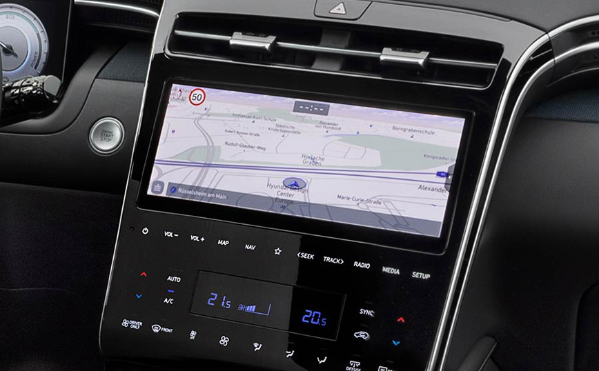 Όσον αφορά την συνδεσιμότητα, το νέο Tucson διαθέτει την τελευταία έκδοση των κορυφαίων υπηρεσιών Bluelink, που προσφέρει πολλές υπηρεσίες όπως Connected Routing, Last Mile Navigation, αλλά και τα Apple CarPlay και Android Auto, για σύνδεση των smartphones.