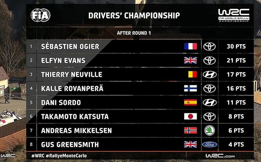 Μέχρι τότε, στην βαθμολογία των οδηγών θα προηγείται ο Οζιέ με 30β., με δεύτερο τον Έβανς (21β.) και τρίτο τον Νεβίλ (17β.), ενώ στους κατασκευαστές πρώτη η Toyota με 52β., δεύτερη η Hyundai με 30β. και Τρίτη η M-Sport Ford με 10β.