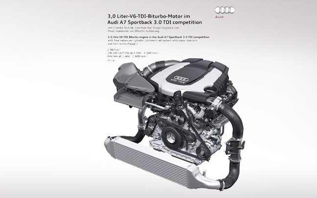 Η «ψυχή» του Α7 Sportback 3.0 TDI competition είναι ένα 3λιτρο V6 bi-turbo σύνολο πετρελαίου, το οποίο δέχθηκε τις «περιποιήσεις» των ανθρώπων της εταιρείας, ώστε να διευρυνθεί η ισχύς του κατά 7 ίππους, φτάνοντας έτσι στους 326 ίππους. Για ένα σύντομο χρονικό διάστημα, η λειτουργία boost προσφέρει επιπλέον 20 ίππους ισχύος, αφού ο οδηγός πατήσει δυνατά το πεντάλ του γκαζιού.