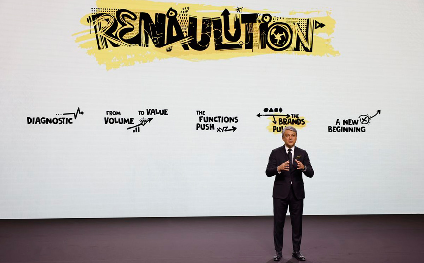 O κ. Luca de Meo, CEO του Groupe Renault, παρουσίασε το “Renaulution”, το νέο στρατηγικό πλάνο, που αποσκοπεί στη μετάβαση του Groupe από τη στρατηγική επιδίωξης μεριδίων σε μία νέα προσέγγιση με στόχο την επίτευξη της μεγαλύτερης δυνατής αξίας από τα προϊόντα.