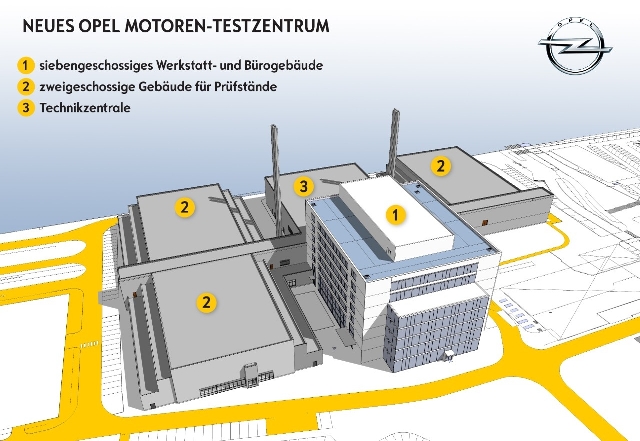 Η Opel ξεκινά ένα σημαντικό κατασκευαστικό έργο στην έδρα της στο Rüsselsheim: Η εταιρία διαθέτει 210 εκατομμύρια ευρώ στην ανέγερση ενός συγκροτήματος κτιρίων – το ψηλότερο από τα οποία θα είναι 7όροφο – στο νοτιοδυτικό τομέα των εγκαταστάσεων του Διεθνούς Κέντρου Τεχνικής Εξέλιξης (ITDC). Σε μία επιφάνεια συνολικού εμβαδού περίπου 36.000 τ. μ., από το 2017 μηχανικοί και τεχνικοί θα εξελίσσουν τους κινητήρες του μέλλοντος. Το νέο κέντρο θα στεγάζει επίσης 43 πάγκους δοκιμών επιδόσεων τελευταίας γενιάς.