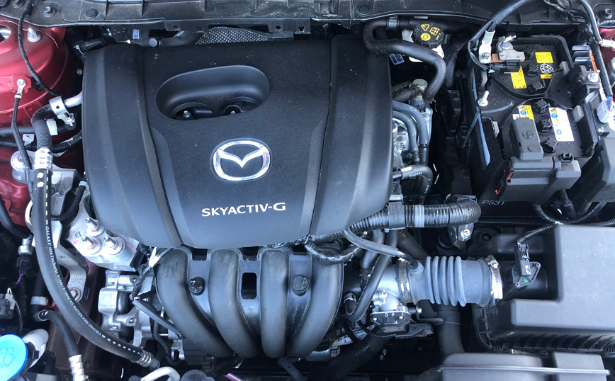 Όπως έχουμε γράψει και σε άλλα δημοσιεύματα, η Mazda είναι αντισυμβατική εταιρία και αυτό φαίνεται καθαρά στα κινητήρια συστήματα, όπου δεν ακολουθεί την τάση του downsizing (μικροί κυβισμοί με τούρμπο). Έτσι, το ανανεωμένο «2» έχει για κινητήρια δύναμη ένα ατμοσφαιρικό κινητήρα βενζίνης 1500 κ.εκ. που ανήκει στην «οικογένεια» Skyactiv-G και διαθέτει ηλεκτρική υποβοήθηση υπό τη μορφή ενός mild-hybrid συστήματος (B-ISG) με γεννήτρια/μίζα και πυκνωτή (αντί μπαταρίας) χωρητικότητας 0,012 kWh.