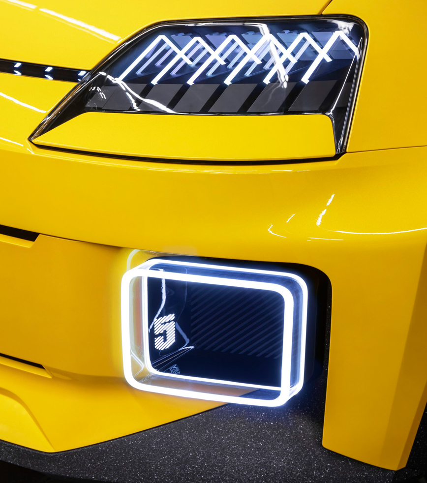 Για την εκ νέου ανακάλυψη της εμβληματικής έκφρασης του R5, χρησιμοποιήθηκαν υπερ-μοντέρνες τεχνικές. Συγκεκριμένα, αξιοποιήθηκε η τεχνολογία LED matrix που επιτρέπει την κίνηση των φωτιστικών μέσα από προγραμματιζόμενα animations, ικανών να ζωντανέψουν τα φωτιστικά. Αυτό αποτυπώνεται έμπρακτα στην αλληλουχία καλωσορίσματος. Το νέο λογότυπο του μοντέλου φωτίζεται και ενεργοποιεί ένα φωτιζόμενο animation που επεκτείνεται μέχρι τη γρίλια της μάσκας. Στην συνέχεια, τα φωτιστικά σώματα ενεργοποιούνται με τέτοιο τρόπο που νομίζεις ότι το αυτοκίνητο σου κλείνει το μάτι. Είναι αδύνατον να αγνοήσει κανείς αυτό το παιχνίδισμα!