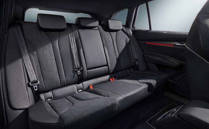 Η Sportline Design Selections περιλαμβάνει επίσης αποκλειστικά μαύρα σπορ καθίσματα με ενσωματωμένα προσκέφαλα. Αυτά είναι επικαλυμμένα με επένδυση μικροϊνών Suedia και διαθέτουν γκρι λεπτομέρειες.