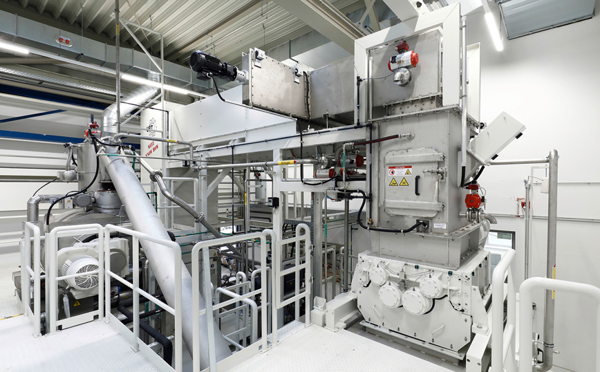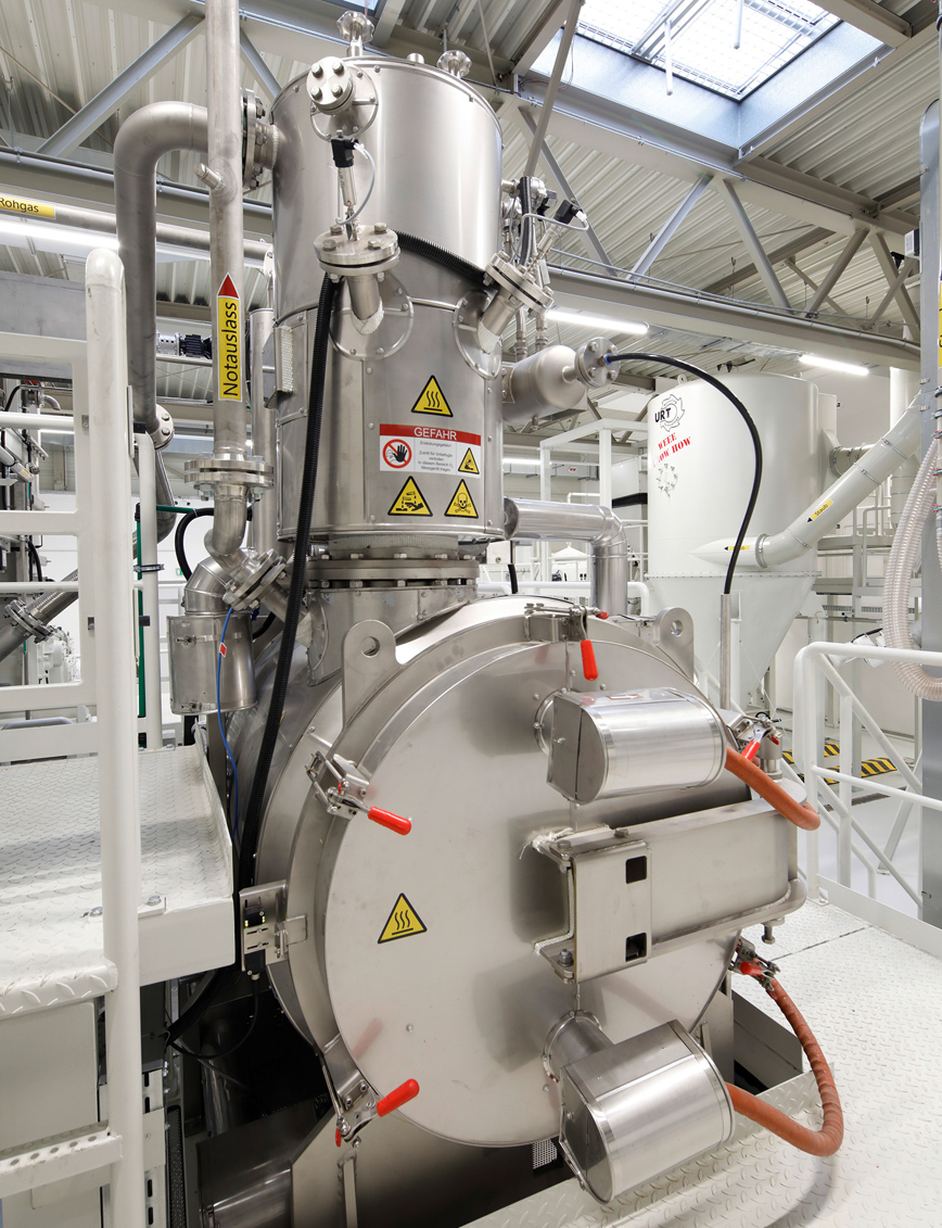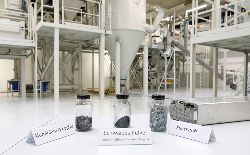 Η επαναστατική διαδικασία ανακύκλωσης με τη μικρότερη δυνατή παραγωγή CO2 δεν απαιτεί τήξη υψηλής ενέργειας σε υψικάμινους και συνεπώς δεν υπάρχουν ρύποι. Τα προς ανακύκλωση συστήματα μπαταριών παραδίδονται στο εργοστάσιο, ζυγίζονται, αποφορτίζονται σε βάθος και αποσυναρμολογούνται. Τα μεμονωμένα μέρη αλέθονται σε ειδικούς μύλους μέχρι μέγεθος κόκκου και μετά ξηραίνονται. Εκτός από το αλουμίνιο, τον χαλκό και τα πλαστικά, η διαδικασία παράγει μία πολύτιμη «μαύρη σκόνη», η οποία περιέχει τις σημαντικές πρώτες ύλες για μπαταρίες, όπως είναι το λίθιο, το νικέλιο, το μαγγάνιο, το κοβάλτιο, καθώς και ο γραφίτης. Ο διαχωρισμός και η επεξεργασία των επιμέρους υλικών πραγματοποιούνται με ειδικές μεθόδους και υδρομεταλλουργικές διεργασίες, χρησιμοποιώντας νερό και χημικούς παράγοντες.
