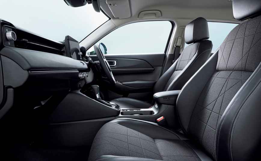 Το νέο HR-V πετυχαίνει συνδυασμό στυλ SUV και ευρυχωρίας, χάρη στην διάταξη των εξαρτημάτων του υβριδικού συστήματος κίνησης. Έτσι διατηρεί τον μεγάλο εσωτερικό χώρο του προκατόχου του, έχοντας την δυνατότητα μεταφοράς τεσσάρων ενήλικων με άνεση. Το ευρύχωρο εσωτερικό είναι στα πρότυπα των premium SUV, με χρήση μοντέρνων και ποιοτικών υλικών. Η σύγχρονη, μινιμαλιστική αισθητική, που ξεκινά από την οριζόντια διάταξη του πίνακα οργάνων, είναι αποτέλεσμα της λιττής φιλοσοφίας του εσωτερικού και του ταμπλό, όπου το κάθε στοιχείο είναι μελετημένο και εργονομικά τοποθετημένο. Την ευχάριστη αίσθηση των επιβατών εγγυάται το νέο σύστημα διάχυσης του αέρα που καθοδηγεί την ροή φρέσκου αέρα δίπλα και πάνω από τους επιβάτες, μέσω αεραγωγών σχήματος L στις πάνω γωνίες του ταμπλό.