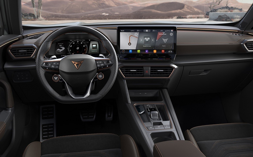 Η καμπίνα προσφέρει μοντέρνο και σπορ χαρακτήρα με τα εσωτερικά highlights να περιλαμβάνουν το τιμόνι Cupra, 12” σύστημα infotainment και λύσεις συνδεσιμότητας. Η τελευταία πινελιά είναι τα ολοκαίνουργια δερμάτινα καθίσματα CUP Bucket, που παρουσιάζονται για πρώτη φορά με το VZ5.