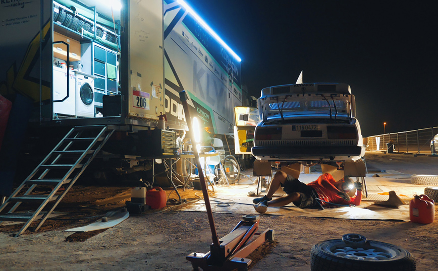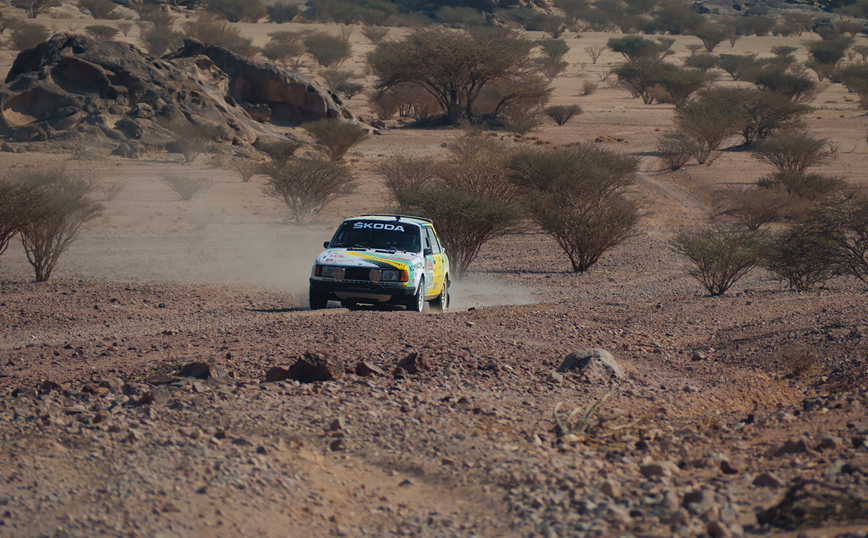 Δύο εφεδρικά ελαστικά, ένα ρεζερβουάρ καυσίμου μεγεθυμένο στα 85 λίτρα, ένα ζευγάρι ράμπες για να ξεκολλά το αυτοκίνητο από την άμμο, φτυάρια και μερικά βασικά ανταλλακτικά, ήταν η προίκα του ιστορικού Skoda για τους ατέλειωτους αμμόλοφους. Βέβαια, ως αποτέλεσμα, το αυτοκίνητο έφτασε να ζυγίζει πάνω από έναν τόνο, σε σύγκριση με το βάρος του αρχικού αυτοκινήτου ράλι που ήταν γύρω στα επτακόσια κιλά.