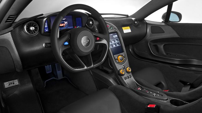 Στην καμπίνα της ξεχωριστής αυτής P1, δεσπόζει το μαύρο δέρμα σε συνδυασμό με alcantara στα καθίσματα carbon, ενώ λεπτομέρειες από ανθρακόνημα συμπληρώνουν την εικόνα στο εσωτερικό του πολυτελούς υπεραυτοκινήτου.