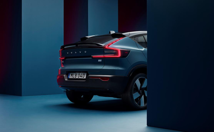 Το πίσω μέρος του C40 Recharge διαθέτει μία εντυπωσιακή σχεδίαση με χαμηλή γραμμή οροφής, ενώ η εμπρός σχεδίαση λανσάρει ένα νέο πρόσωπο για τα ηλεκτρικά Volvo και περιλαμβάνει προβολείς με state-of-the-art τεχνολογία pixel.