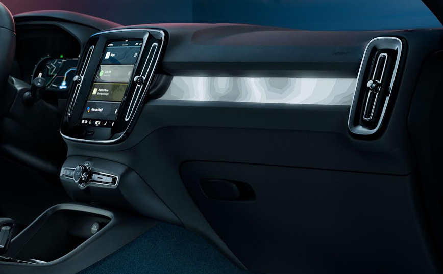 Στο εσωτερικό, το C40 Recharge παρέχει στους πελάτες την υψηλή θέση οδήγησης που προτιμούν οι περισσότεροι οδηγοί, ενώ στο διάκοσμο και στα χρώματα υπάρχει μία σειρά επιλογών που είναι αποκλειστικές για το συγκεκριμένο μοντέλο. Πρόκειται επίσης για το πρώτο αυτοκίνητο της σουηδικής μάρκας στο οποίο δεν γίνεται καθόλου χρήση δέρματος. Επίσης, το ηλεκτρικό μοντέλο διαθέτει ένα από τα καλύτερα συστήματα infotainment στην αγορά. Εξελιγμένο σε συνεργασία με την Google, βασίζεται σε λειτουργικό σύστημα Android. Προσφέρει στους καταναλωτές εφαρμογές Google και ενσωματωμένες υπηρεσίες όπως το Google Maps, το Google Assistant και το Google Play Store. Τα απεριόριστα δεδομένα παρέχουν εξαιρετική συνδεσιμότητα και το C40 Recharge θα λαμβάνει ασύρματες αναβαθμίσεις λογισμικού, κάτι που σημαίνει ότι, θα συνεχίσει να βελτιώνεται με την πάροδο του χρόνου.