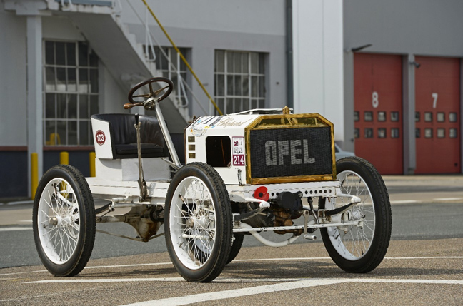 Τρία ιστορικά αγωνιστικά Opel εκτίθενται τιμώντας τη γέννηση του μηχανοκίνητου αθλητισμού στο Rüsselsheim. Το παλιότερο βασίζεται στο πρώτο Motorwagen 10/12 PS της Opel που κατασκευάστηκε το 1903. Την ίδια χρονιά, αυτός ο τύπος αυτοκινήτου κέρδισε στην κατηγορία «Light» Class II (για οχήματα μέχρι 10 hp) σε διοργάνωση στο ιπποδρόμιο Niederrad στη Φρανκφούρτη. Στο τιμόνι ήταν ο Fritz Opel με το διάσημο οδηγό της Opel Carl Jörns, ο οποίος στη συνέχεια κέρδισε σε 288 αγώνες, σε ρόλο συνοδηγού. Η εκθεσιακή έκδοση του λευκού αγωνιστικού 10/12 PS έχει ανακαινιστεί από την Opel Classic και αποτελεί πιστό αντίγραφο του ιστορικού αυτοκινήτου από το 1903.