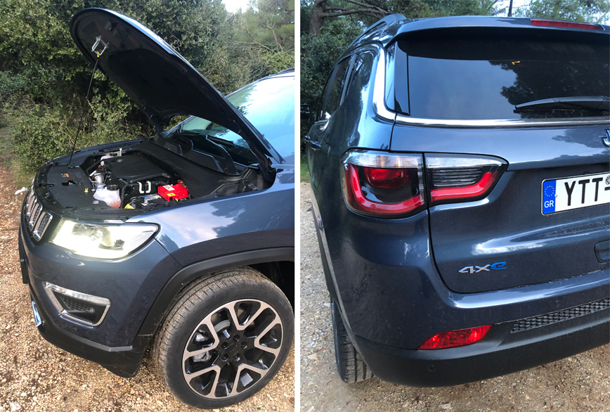 Το μεσαίο SUV της Jeep έχει σχεδιαστεί ώστε να παρέχει στον χρήστη του αυξημένες εκτός δρόμου ικανότητες χωρίς περιορισμούς σε άνεση και πρακτικότητα. Το Compass της δοκιμής μας δεν διαφέρει εξωτερικά από τις συμβατικές εκδόσεις, εκτός από το λογότυπο 4xe στην 5η πόρτα, το μπλε φόντο γύρω από το σήμα της Jeep και τα δύο καπάκια στα πίσω φτερά, ένα από την πλευρά του συνοδηγού για βενζίνη και το άλλο για ανεφοδιασμό ρεύματος.