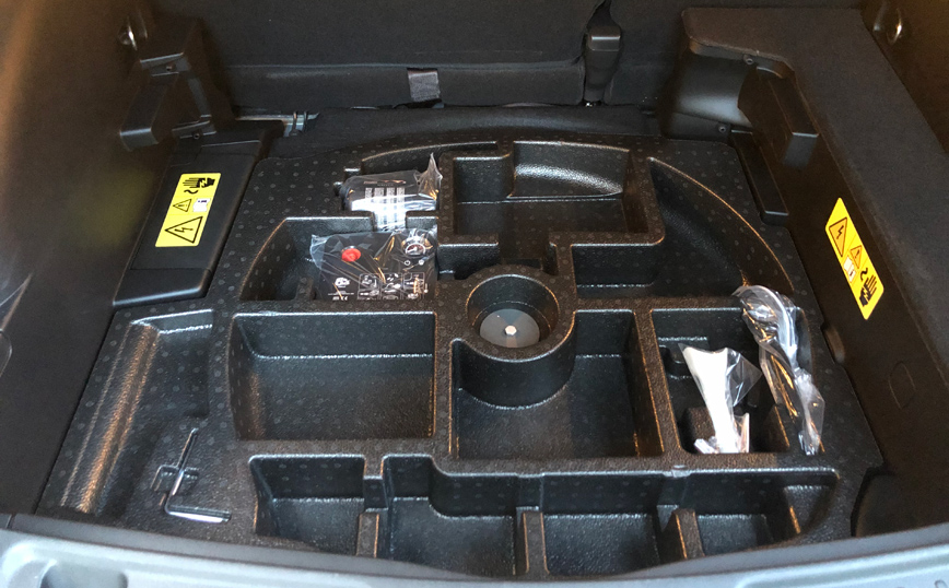 Όσον αφορά τους χώρους, στο εσωτερικό φιλοξενούνται άνετα να φιλοξενηθούν μέχρι και πέντε ενήλικες, με άφθονο χώρο για πόδια και κεφάλια, ενώ η τοποθέτηση της μπαταρίας πίσω από τα καθίσματα των πίσω επιβατών, μειώνει ελάχιστα τον χώρο αποσκευών που φθάνει τα 420 λίτρα, αλλά δεν έχει ρεζέρβα (μόνο κιτ επισκευής ελαστικού). Ελάχιστοι παραμένουν και πάλι οι χώροι για μικροαντικείμενα.